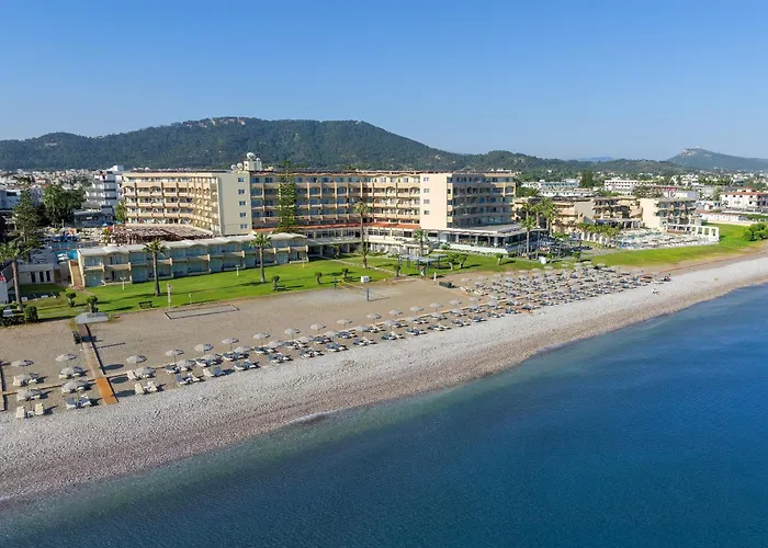 Situé au cœur de la station balnéaire d'Ialyssos, le Sun Beach Resort Complex est un hôtel familial 4 étoiles exceptionnel qui vous garantit des vacances inoubliables à Rhodes. Avec ses deux bâtiments entourés de 35 000 m^2 de jardins s'étendant jusqu'à la mer, cet établissement est l'un des rares de la région à offrir un accès direct à la plage d'Ialyssos.